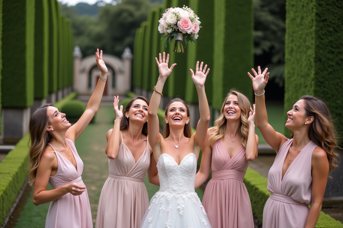Le lancer de bouquet vient clore la cérémonie avec une bonne dose de superstition et de symboles. Peu de coutumes traversent ainsi les siècles, tout en restant aussi ludiques. Ici, le bouquet traditionnel n’est plus seulement un accessoire : il incarne l’espoir, la transmission, et un brin de compétition joyeuse.